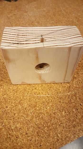 En una de las marcas de centro, perfore un orificio de 3/4" de diámetro, todo el camino, para el eje.