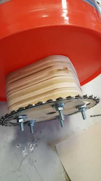 Paso 34: Cubo impermeable: montaje de tubería y piñón interno