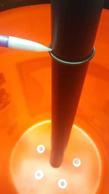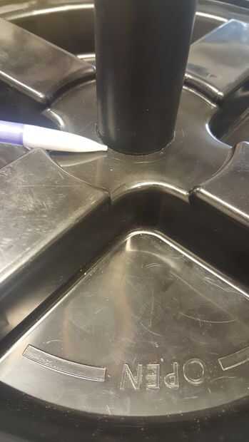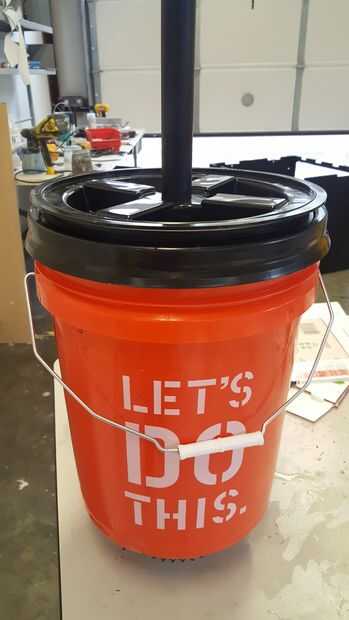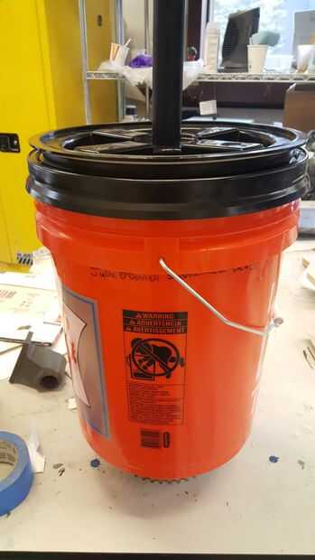 Use sellador para asegurar un anillo o en un lugar que se fije sobre el orificio cuando está cerrada la tapa del cubo. Esto probablemente no será perfectamente impermeable, pero ayudará.