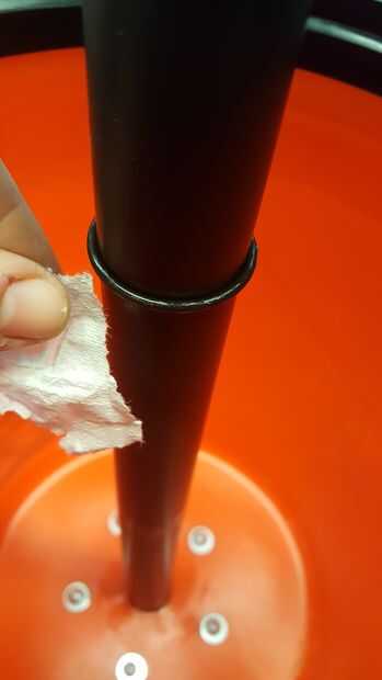 (Nota: como medida preventiva adicional, podría cortar un agujero en el centro de la esponja y deslícelo sobre el eje para recoger caiga.)