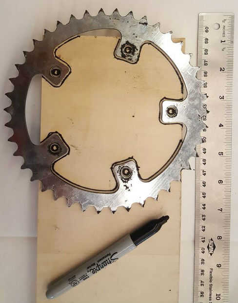 Esta pieza ajusta entre el cubo y el piñón, dando espacio para la rodilla pedalear sin golpear el cubo de cada movimiento. Usted quiere un pedazo (o varios pedazos apilados juntos) que es lo suficientemente gruesa como para pedalear cómodo, basado en sus medidas de modelo de bosquejo.