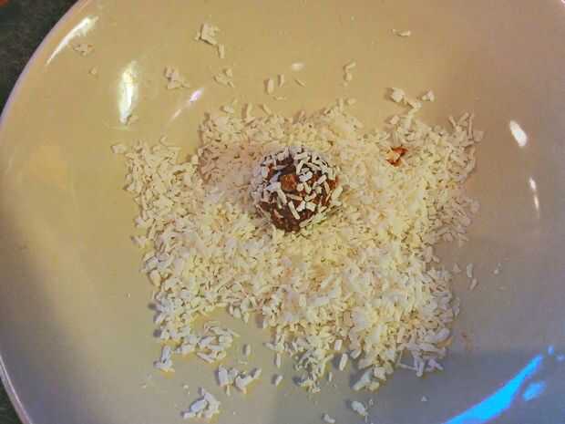 Que la mordedura de chocolate en un bol. Enróllelo alrededor así que está totalmente cubierto.