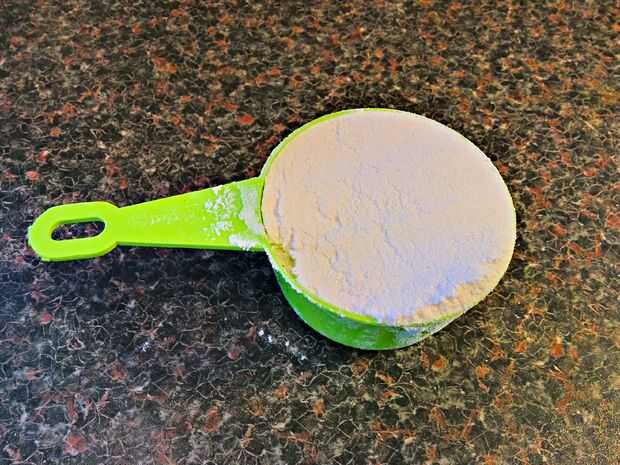 Agregar 1,7 tazas de harina en el recipiente.