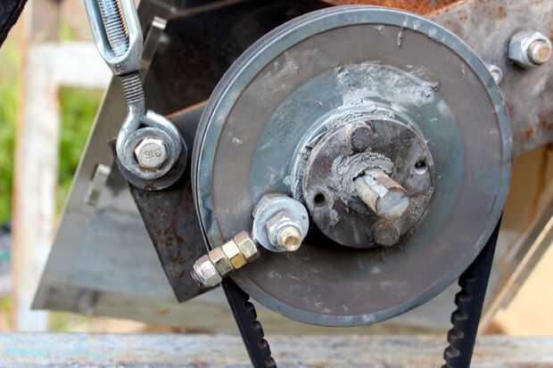He encontrado que con la configuración vibratoria presente de polea (foto principal) que necesitaba para funcionar el motor a velocidad bastante bien completo para obtener buena vibración después de una pesada carga de suelo se vuelca en la pantalla. Una polea de diverso tamaño, poleas o más peso en la polea de la vibrante podría permitir un menor rpm del motor obtener la vibración deseada.
