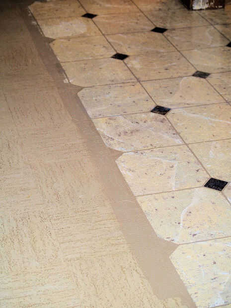 1. en primer lugar, limpiar piso bien antes de pintar, retirar la cera. Usé el esmalte alquídico de Zinsser porque el piso es una zona de alto tráfico. Pintar toda la zona. El Zinsser es indestructible. Lo tenía teñido el color que quería para las líneas de lechada. Deje que la curación de pintura durante varios días. Si se está pintando un piso, mostrador o cualquier cosa con un brillo, la debe usar un producto como Zinszer. Si están pintando algo que no sea de un piso que no se desgaste, se puede usar pintura acrílica. Ocultar las líneas de lechada. Utilice el papel de contacto para máscara de azulejos pequeños de color alternativo. Incluyen las líneas de lechada en su medida. Cualquier diseño es posible, use su imaginación. Por desgracia, me decoupaged los azulejos cuadrados pequeños, impresos desde mi ordenador, en mi piso, no llevan bien.