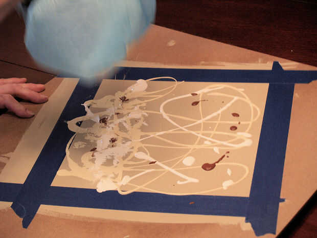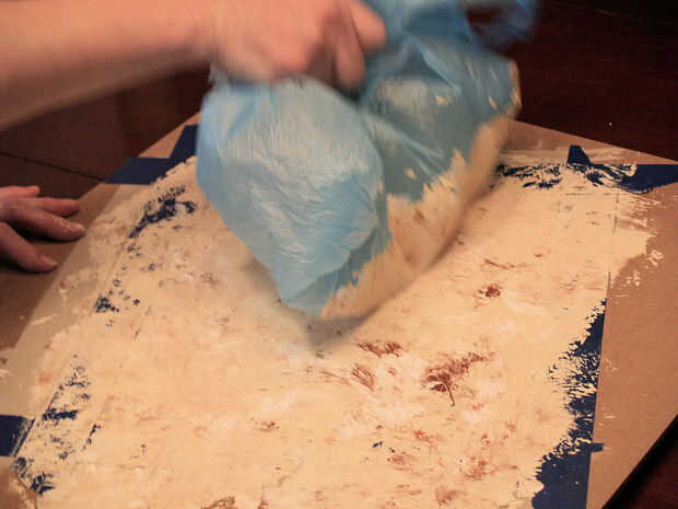 hice esta manta de chenille del faux para un bebé recién nacido, Ezra!  Dejé en marrón, blanco y azul - niño colores.  Fue bastante fácil de hacer, pero era muy desperdiciador de tiempo.  El producto final merece la pena.  Es muy suave, y aquí está u