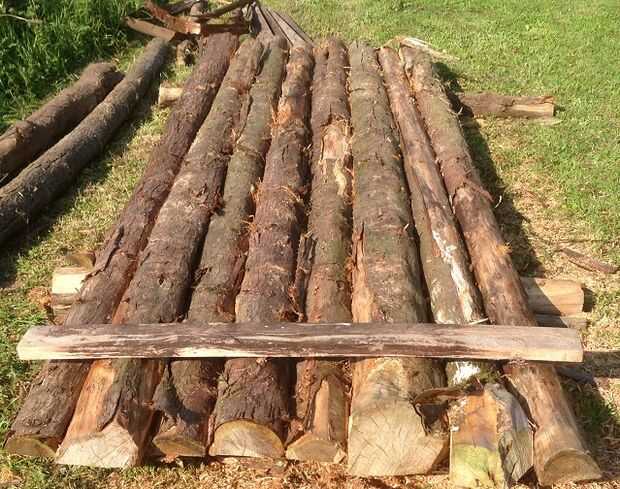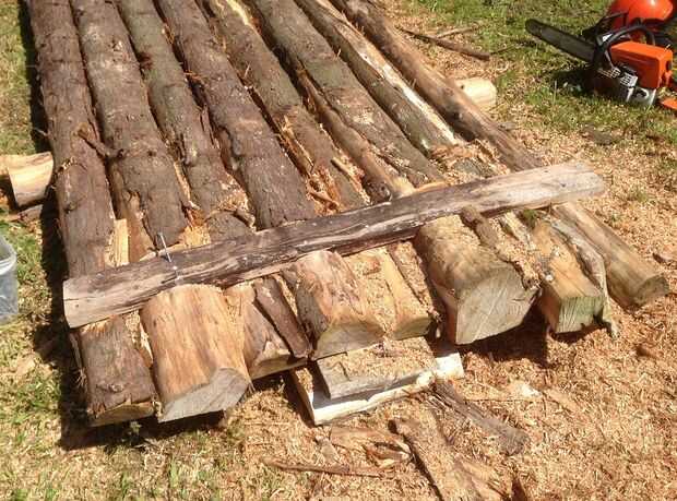 El arriostramiento transversal que usé es algunas piezas de madera de haya que fueron previamente mecanizadas y conseguí barato en una subasta local. Usted podría rebanar algunos troncos de los árboles más para conseguir lo mismo.