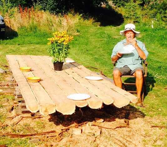 el año pasado cortamos abajo 2 noventa + pinos de los años que morían. Mantener los fondos y una parte superior de los árboles para mesas y una barra mesa de al lado el caballo zapato pitt. Hizo también un banco para el fuego hoyo pero me mostrará qu