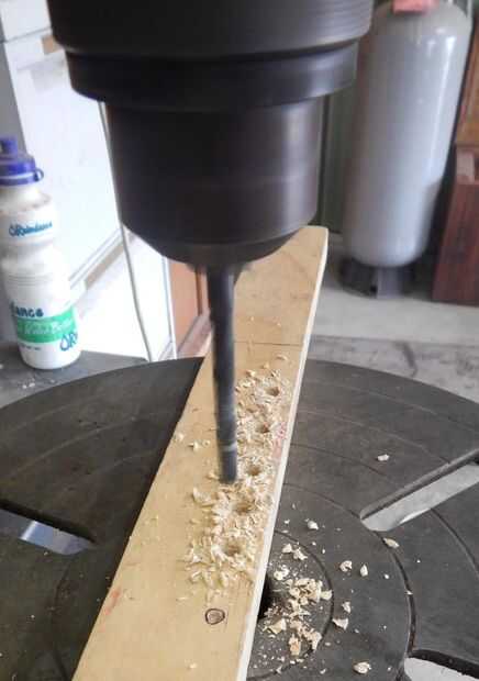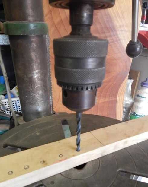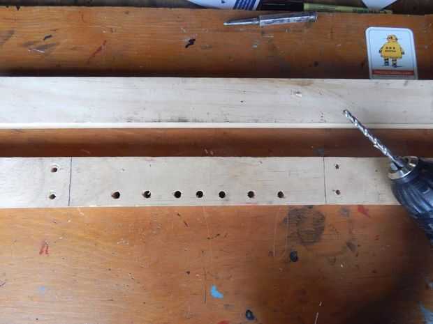• Usando una broca del mismo tamaño como los agujeros en el papel, perforar la madera en todas las posiciones de agujero.