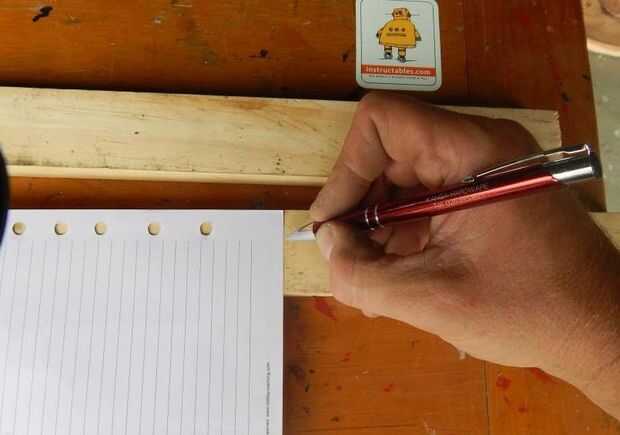 • Marque los centros de agujeros y los bordes del papel en la madera.