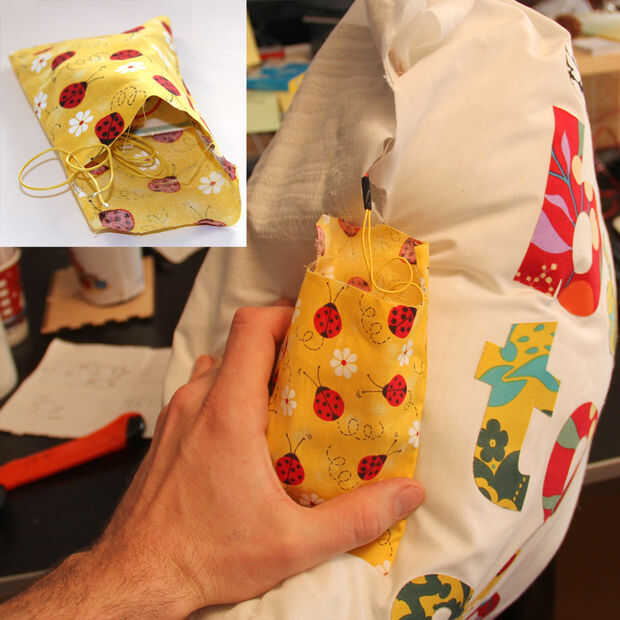 Después de relleno de la almohada y el circuito conectado, lugar el circuito dentro de la bolsa y cose el cojín cerrado.