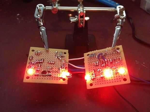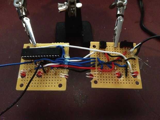 y caliente pegado a la Junta de una manera ordenada. Esto ayudó con asegurándose de que los cables estaban alineados al soldar en la otra tabla. y también asegurarse de que los cables no Junte los tableros en ángulo que hace el LED desalineación