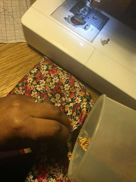 Luego llena la bolsa con las semillas de lino y utilizado, mi muy amado, la escalera de la puntada para coser cerrado. (Va a ser mucho más puntada escalera en este proyecto...)