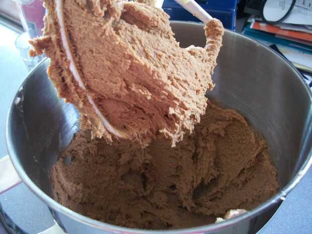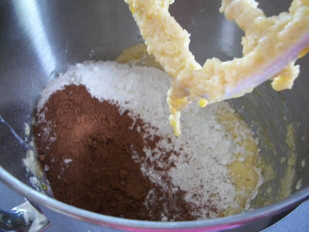 Paso 3: Batir poco a poco en la harina, polvo de hornear, sal y cacao en polvo hasta que se forma una masa.