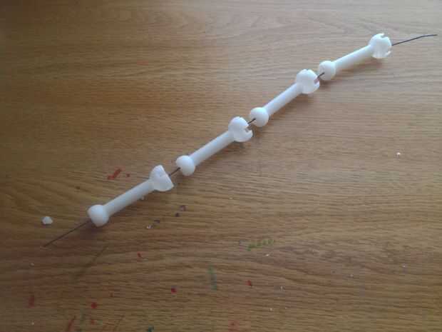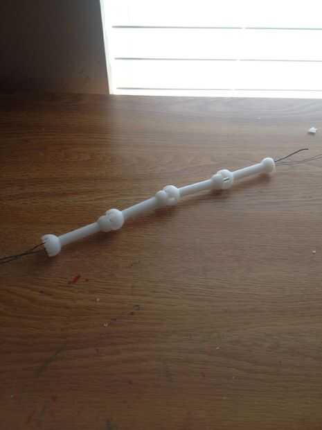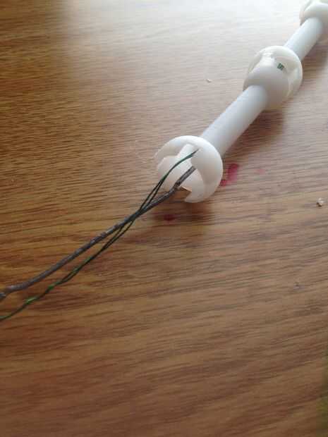 Primer 3d todas las piezas, usted imprimir tanto de las piezas del brazo que quieras como que va a determinar hasta qué punto el led será capaz de llegar. Siguiente partido de los "brazos" en dos grupos uno por la derecha y uno para la izquierda. lo que pase el cable a través de. Hilo con dos filamentos, uno para positivo y negativo.