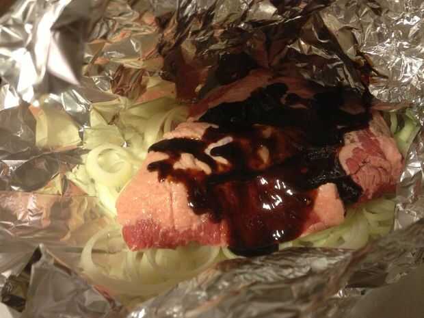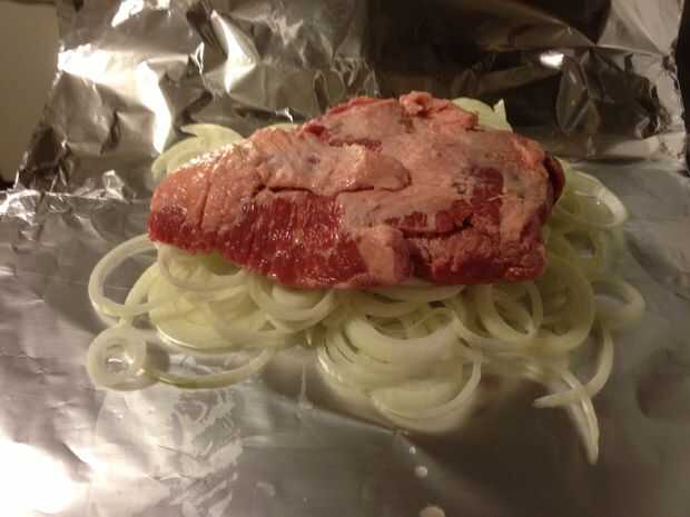 Cortar cebollas en anillos un Desgrase la carne.