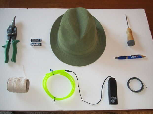 • Un sombrero (preferiblemente con un borde que hace mucho más fácil) (realmente tengo suerte por encontrar este sombrero verde en el fondo de comercio)