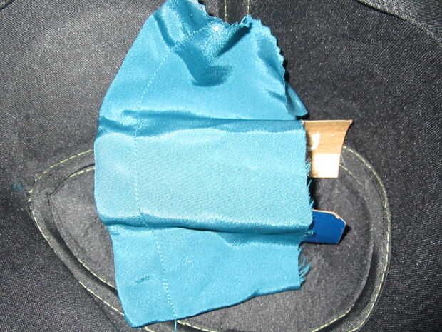 Ahora un montón de pegamento en la cartulina y en el sombrero cerca del compartimiento y entonces pat hacia abajo de la tela.