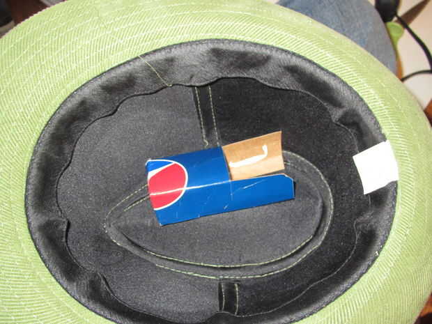 Para colocar el compartimento en el interior del sombrero, primero busque una superficie flat-ish.