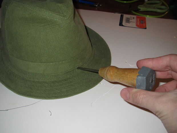 Yo estoy entrando en una competencia llamada fuera de la sombrerera a través de grupo un hatters - en el que tienes que crear un sombrero, pero no le permiten utilizar materiales tradicionales milinery (cuero, paja, woolfelt, sinamay, jinsin, alambre