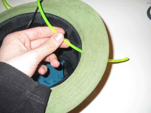 Necesita los siguientesmarrón 1 yarda de tela (hemos utilizado lana)Papel de construcción (para apoyar el borde del sombrero, puede sustituir con otro material)Placa ArduinoProtoboard o perfboard2 pilas de 9V1 pulsador10 LEDs RGB20 resistencias de 33