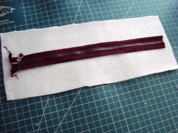 Con la cremallera en la longitud correcta, corte la tela en la misma longitud (mina era de 15"). El ancho debe ser sin embargo grandes que desea la boca a abierta (el mío era 6").