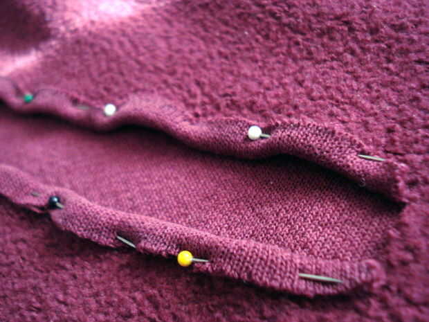 Vuelva su sudadera, y luego prender la camiseta a lo largo de corte horizontal.