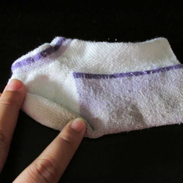 Paso 5: En la parte del talón del calcetín, se pliegan a una pequeña sección.