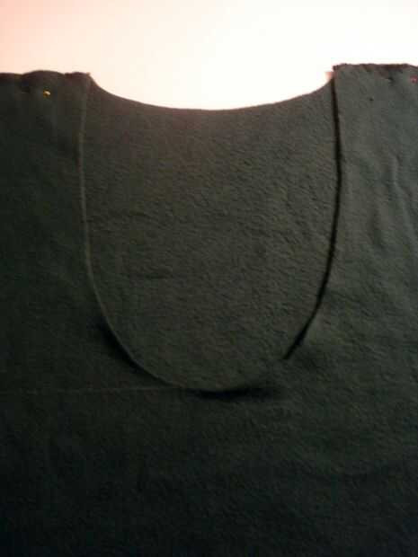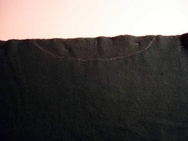 lo cool de lana es que cuando usted la pone aunque el secador fieltros lo que puede cortar el suéter sin terminar los bordes.    Decidí aprovechar este suéter de fieltro y bufanda infinity con capucha y polainas con este suéter.  Tuve la suerte de qu