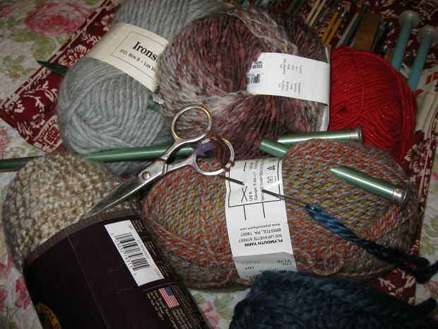 Necesita hilo quiero mezclar dos hebras de hilo de un abultado y un tipo más fino. También se necesitan agujas y una aguja de zurcir. Un par de tijeras es útil y si desea utilizar botones encontrarán 3 que más te guste.