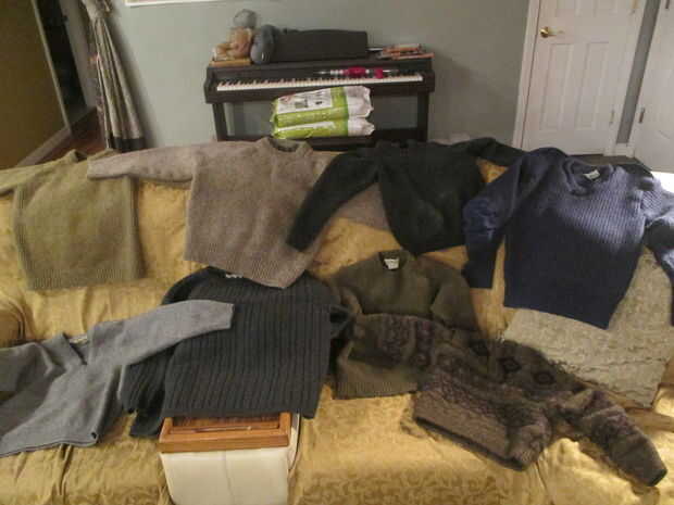 La lavadora cantó su canción después de una hora y media me dice fue completa. Llevaron hacia fuera y bromeó. Más había reducido mucho, uno no tanto como los otros, y uno reducido ridículamente pequeño. Este suéter particular era una impresión, por lo que no sólo tenía las cadenas de hilo, sino fue también doble capas. Esta cosa era gruesa!