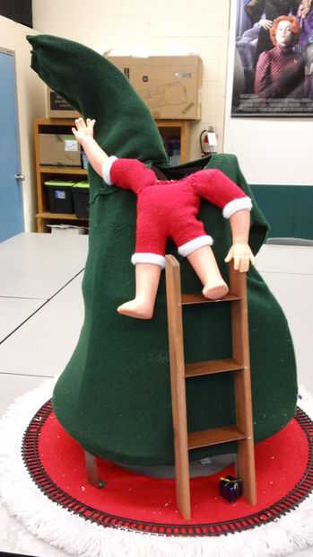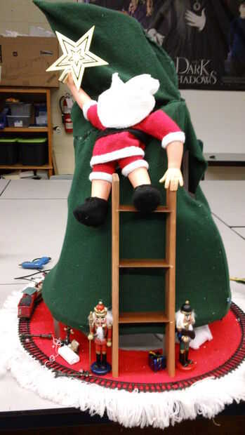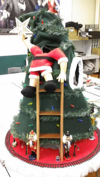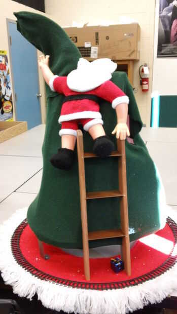 - Me coloca la muñeca recién formada de la Santa en la escalera y traté de conseguirlo que se inclina hacia el lado. Pegué la estrella del ejército de salvación de ciento cincuenta en su mano para que se vea como él está alcanzando para los toques finales.