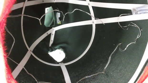 - Se ha añadido luces de tienda de dólar empujándolos a través el suéter desde el interior, y volver a colocar los bulbos desde el exterior. Así no tienes que pegar y puede vuelva a colocarlos más tarde si es necesario.