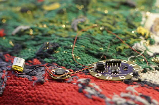 LilyPad Arduino suéter de Navidad con las luces parpadeando y música
