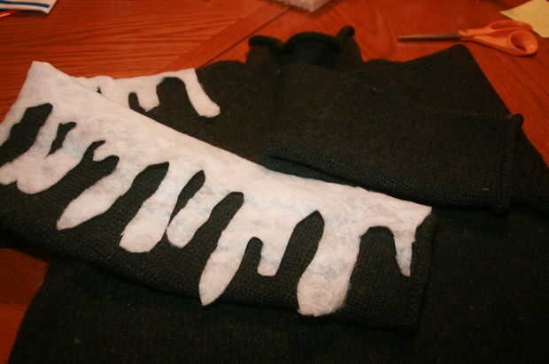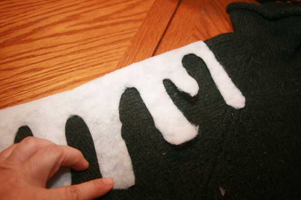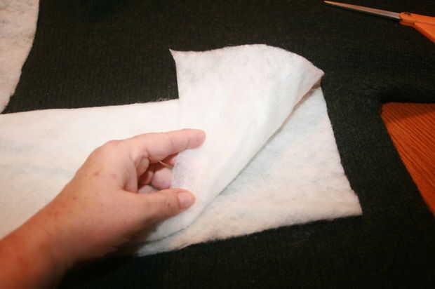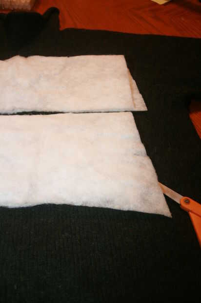 Paso 2: Cortar y agregar el bateo de poliéster a las mangas del suéter