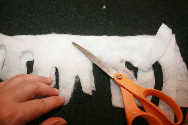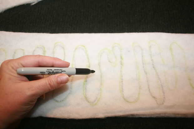 Cuando usted está satisfecho con la forma de sus paletas, el siguiente paso es colocar sobre el suéter y comenzar a coser en su lugar. Tenga en cuenta, aunque la costura es el mejor método para fijar el poliéster de carámbano de bateo, si usted tiene prisa o si usted planea solamente llevar tu suéter un par de veces, usted puede conectar con pegamento caliente en su lugar.