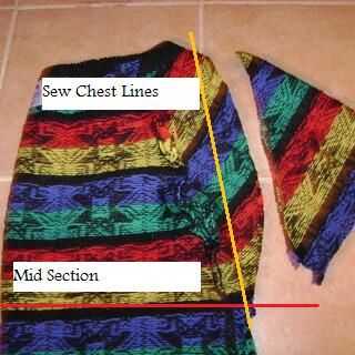 1. coser el área del pecho hasta los pernos que marque la sección media. Ver líneas naranja en pic1 para referencia.