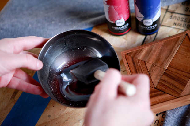 Si usa varios colores, mezclar junto con el cepillo de la esponja hasta que colores se mezclan muy bien.