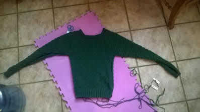 Tomar una aguja de zurcir y una pieza extra de hilo. Coser las mangas al torso como en la imagen. Una puntada del azote será suficiente, a menos que seas una experta costurera luego se puede utilizar cualquier técnica de costura que elija. Luego doblar el suéter y coser por el lado de la chompa y el lado del brazo para añadir más hilo debajo de los brazos de desgaste.