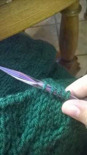 Luego tejer una costilla P1 K2 todo el camino alrededor de su cuello para 6 hileras