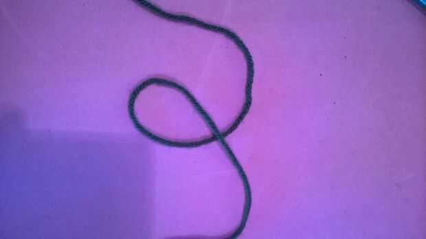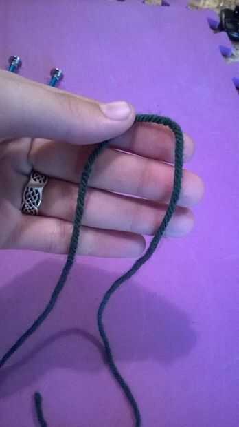 • seguir tirando de la sección central del hilo manteniendo la cola y el hilo de trabajo (adjunta a la bola/madeja de hilo)