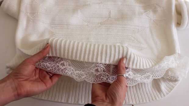 Si el cordón es amplia como la mía, usted puede cortar por la mitad. Si no, comprar poco más de doble el ancho de tu suéter.