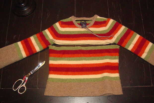 si usted quiere algunos manguitos, arrancar hojas o calentadores de la pierna y no quiere gastar dinero - puede modificar un suéter viejo para hacer cosas nuevas gran! Que es lo que hice aquí con un Jersey que era muy pequeño me - I reciclado y trans