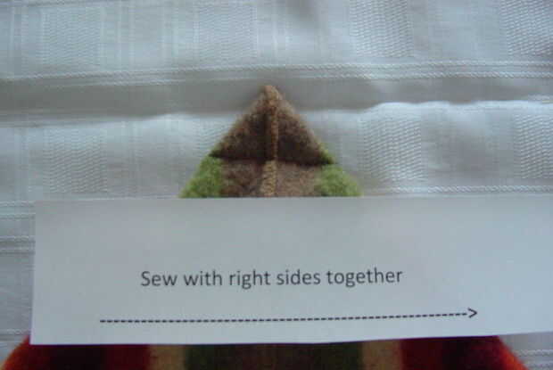 Mantener sus bolso derecho lados juntos, abre su bolsa y luego gire 90°. Pelusa el punto de la esquina hasta la costura que solo cosido. Medir hacia abajo de 1,5 pulgadas, marca y alfileres. Repita para el otro lado.