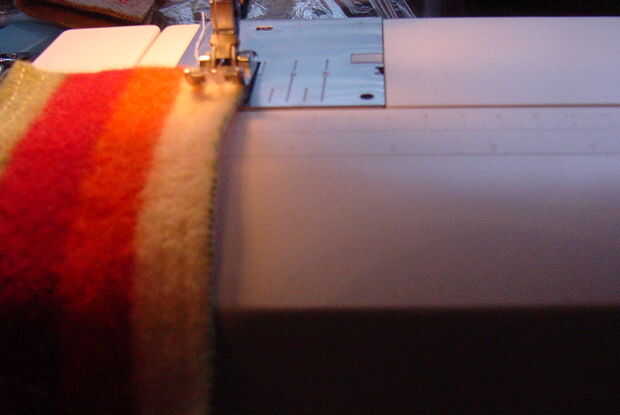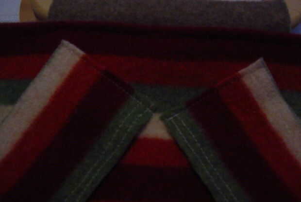 Una vez que determinado donde quería los mangos apoyados. Cortar 2 piezas (6.5 X 4) de los desechos de la chompa que sostendrían los mangos en lugar de una sola pieza en cada lado.