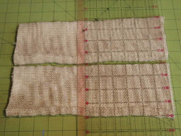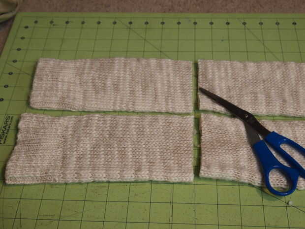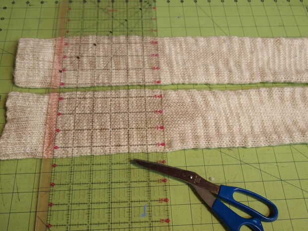 - Cortar dos piezas de material suéter 12 pulgadas de largo
