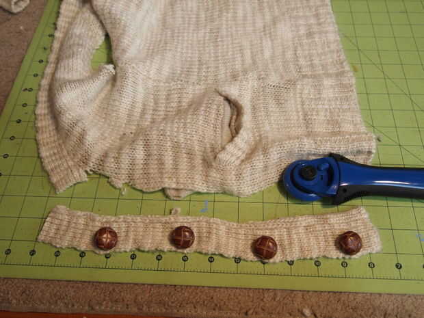 - Antes de empezar a cortar material suéter hacia fuera, tenga en cuenta que mis manguitos estén un poco ajustados y tuyo puede un poco más flojo. Si, en lugar de añadir una pulgada de material como se explica en las instrucciones, agregar 1 1/2 pulgadas en lugar de otro!
