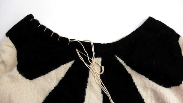 Con hilo de bordar, uso una puntada manta para coser el cuello cerrado.