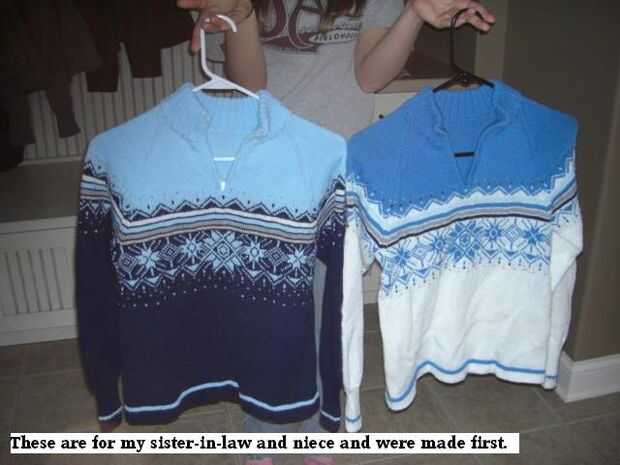 Suéter de mi hermana-en-ley se inició a finales de septiembre, y mi sobrina se inició a mediados de octubre. Sólo terminado el suéter de mi sobrino y se arroja sobre Jersey de mi hermano pronto. Su va a ser sobre todo tan con acentos de colores en el resto de los suéteres. Teniendo en cuenta que el suéter todo es tejer con Estados Unidos 2 y nosotros 3 agujas, siento que estoy completando los muy rápidamente.