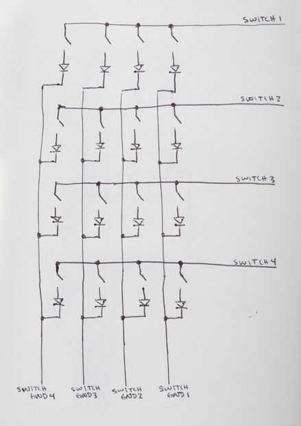 El 74HC595 puede solamente hacer salida paralelo, usé un 74HC165 para medir el estado de los botones mediante 4 resistencias limitantes actuales y enviar esta información a Arduino. Puede encontrar más información sobre el chip en su hoja de datos. Observe en la figura 2 que las 595 virutas de los pasos anteriores van a proporcionar energía a los botones (como lo estan haciendo para los LEDs).